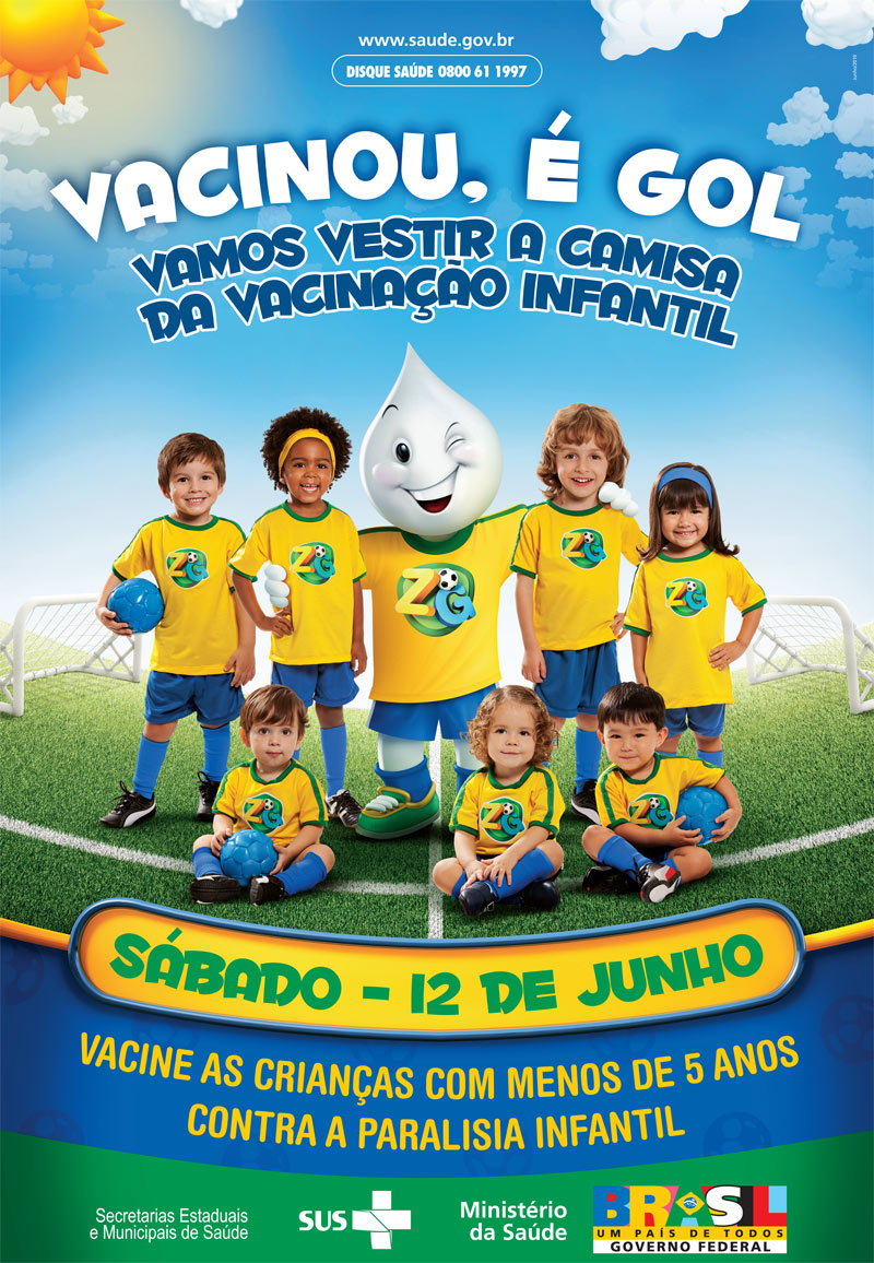 No dia 12 de junho, o Ministério da Saúde, estados e municípios realizam a primeira etapa da Campanha Nacional de Vacinação contra a Poliomielite, que este ano pretende vacinar 16 milhões de crianças menores de cinco anos. Com slogan “Vacinou, é gol. Vamos vestir a camisa da vacinação infantil”.