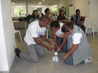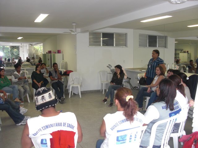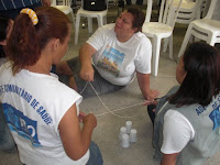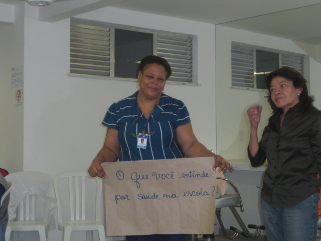 Logo de início foi realizado uma dinâmica para “quebrar o gelo” entre os participantes (dinâmica do copo e do barbante) onde se dividiu a equipe em grupos. Depois os grupos tiveram que responder algumas questões sobre o tema saúde escolar, e a partir daí desenrolou-se trocas de experiências, conhecimentos e novas idéias.